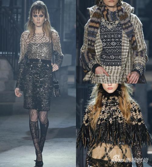 本季卡尔·拉格斐呈现了一个融合法式与意式风格的女性形象。具有罗马风情的教皇式斗篷搭配裙装,经典的黑色斜纹软呢套装,电影胶片式的编结滚边,搭配蕾丝衬衫与优美纤巧的蝴蝶结,雅致而摩登。