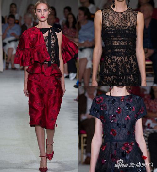 设计师Peter Copping 把秀场搬到Prince George Ballroom便于大家进出的一楼,这个场地让这场秀看起来不只是一个发布会更像一场盛大的表演。设计师采用了大量的拉丁和西班牙风格的绽放的花朵的元素,华丽是Oscar de la Renta的不变主题。