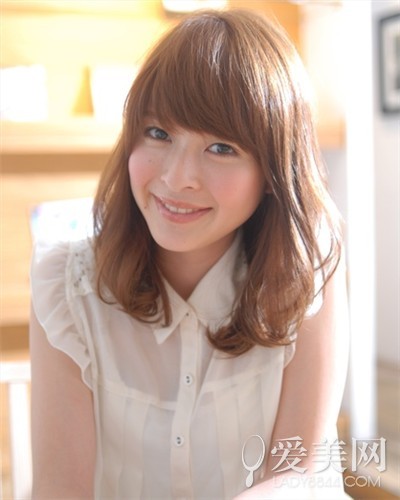 中分的刘海有着层次分明的效果,棕黄色的发色相当时尚潮流,两颊内翘的发尾还彰显出些少的俏皮感,把一边的头发挂到耳后,很有气质!