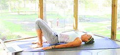 双脚平方在地面上,用肩部支撑,慢慢抬起。