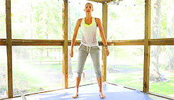 双脚打开与肩部同宽,平稳下蹲至臀部与膝盖同样高度。每个动作都是20-30次,每天3组。