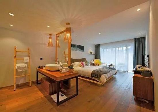 整个客房删繁就简,仅以最简洁的白色与最原生态的木材为主,装饰着采自山间的灵性花草,推窗望去,满目苍翠,吐故纳新间精神气爽。