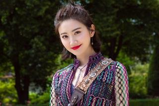 景甜巴黎高定看秀 镂空裙难掩雪白肌肤