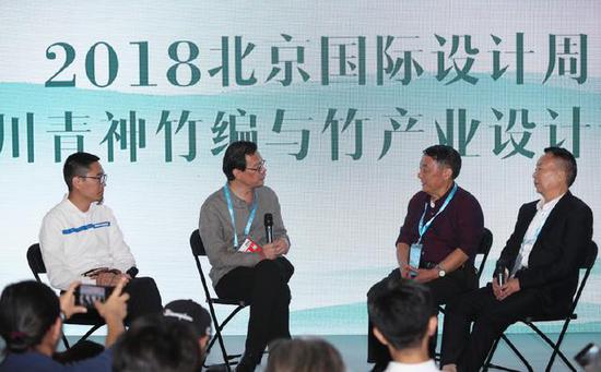 最后,论坛邀请曾辉先生、清华建筑设计院文化地产设计研究中心主任马江浩先生及两位青神竹编非遗传承人陈云华、张德明共同进行关于“青神竹产业发展”的研讨。