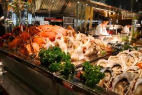 丰富的肉类选择,是早午餐的一大亮点,重达65公斤的烤和牛腿却有着柔嫩入口即化的口感,加上浓郁的红酒酱汁,让人欲罢不能。冷盘区的国际香肠火腿拼盘、烟熏火鸡、顶级牛肉塔塔,到烤猪排、稥煎黑安格斯牛排、和牛汉堡,还有各式风味的肉类主菜,如北京烤鸭、奶油芝士鸡肉、勃艮第红酒炖牛肉、地中海羊排等。宾客可大快朵颐各种做法的各式肉食美味。