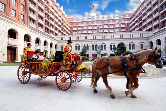 洒满玫瑰花瓣蜜月套房早已准备就绪,豪华婚车载着你们驶入神圣的殿堂;伴随着现场乐队的动人乐章,踩着柔软的手织地毯,穿过鲜花盛放的筵席,接受亲朋好友的祝福。谈笑间,品尝个性化的餐饮,感受细腻贴心的服务,让您人生重要的的婚宴时刻浪漫起航。