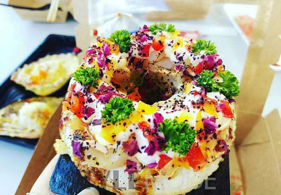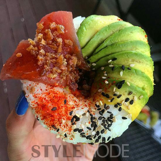 寿司甜甜圈(Sushi Donut)是由INS素食博主Sam发明的,当她把有着超高颜值和新奇创意的寿司甜甜圈发布到自己14万粉丝的账号,瞬间抓住了食客们的眼球,以及健身减脂党的心。