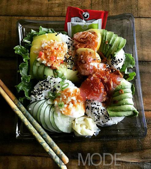 寿司甜甜圈火起来之后,纽约网红店Pokee率先把握了商机,他们在甜甜圈米饭上加上了三文鱼和吞拿鱼刺身,淋上独特的和风酱汁,一口下去,口感丰富,不再像全素的那般寡淡。