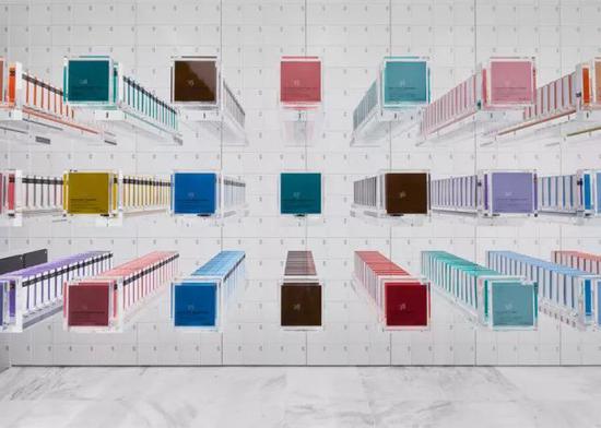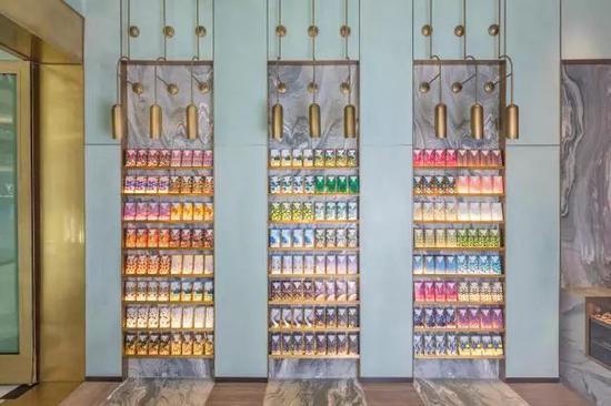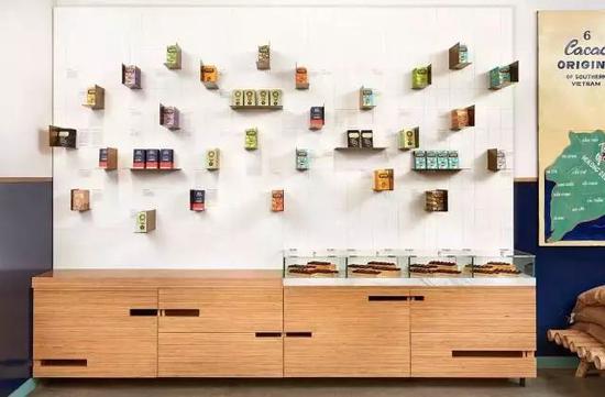 洛杉矶COMPARTES MELROSE是一家从1950年至今都坚持做手工巧克力的店铺。店铺装潢精致优雅,金属和纯色墙面的独特搭配显得空间感十足,特别是巧妙借用包装的色彩排列出的彩虹墙,超具时尚感!