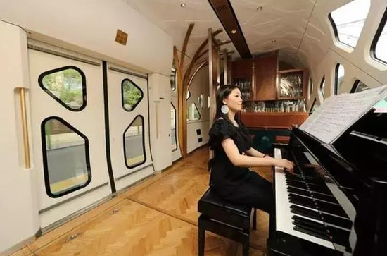 5、6号车厢的天花用彩色玻璃装点,并各安放一台钢琴。