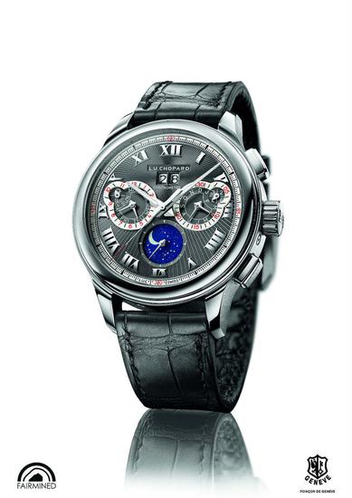 配备万年历机制的计时码表可谓独具一格,将技术和美学结合,结合两种计时特性:一方面,其年历可在长达数个世纪的时间内,精准提供各项指示;另一方面,计时码表可提供短时计时。这款腕表搭载的机芯的运行精准度获瑞士官方天文台精密时计认证(COSC)。同时,限量发行的20枚腕表还获得“公平采矿”认证,其机芯及表壳也通过了日内瓦印记评估标准的审核。腕表的表盘镀有灰色钌层。表盘饰以手工扭索雕纹图案,机芯则采用尊贵的白铜打造,这种合金呈现天然的浅灰色,适于进行表面处理,但不耐刮划,故要求技艺最精湛的工匠精心制作,方显出无懈可击的品质,毫不浮华,彰显自信高雅的气质。