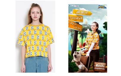 Baby的节目同款,黄色数码印花落肩短款T恤。撞色感排列的立体小房子图案搭配具有廓形感的版型,让这件衣服俏皮而具有系列感,更符合baby少女感十足的元气装扮。
