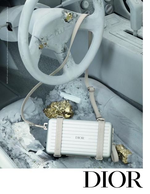 DIOR and RIMOWA独家限定系列旅行箱包饰有别致图案,设计简约,于二零二零夏季男装秀上初次亮相。限定系列中包含一款随身登机箱,采用创新的Multiwheel®万向轮系统,有银色、哑光黑及渐变蓝可供选择,均饰有迪奥OBLIQUE图案,为旅行增添别样格调。这款匠心精品饰有“CHRISTIAN DIOR”字样,随附设计简约、款式相衬的行李束带。此外还有一款铝制行李箱和小巧手提箱,灵感源自九十年代初的一款经典RIMOWA行李箱,配备可拆卸肩带,同样饰有迪奥OBLIQUE图案。轻巧便携的铝制随身斜挎包是存放个人物品的完美伴侣,配有斜挎皮革肩带及精巧内袋,便于收纳随身物品和配饰,有蓝色、黑色、银色和粉色可供选择。优雅且实用的香槟箱为订制产品,彰显金•琼斯现代时尚的艺术理念。这款香槟箱可放置一瓶香槟,同时配有灰色鳄鱼皮手柄,其内部设计构思巧妙,亦可容纳六个DIOR MAISON笛形香槟杯。