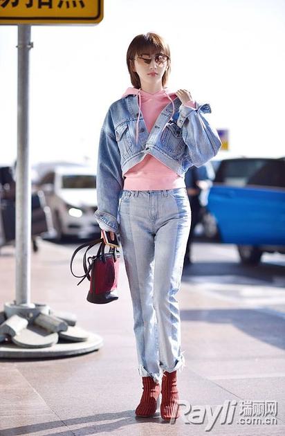 导语:近日,机场捕捉一枚“粉嫩甜”!景甜机场私服,用粉嫩帽衫搭配短裤牛仔夹克,红色短靴和包包呼应。而娜扎也同样用了帽衫+夹克的套路,深色牛仔夹克,内搭黑色前短后长连帽卫衣裙,低温也要秀美腿,看来少女们都爱这么穿!