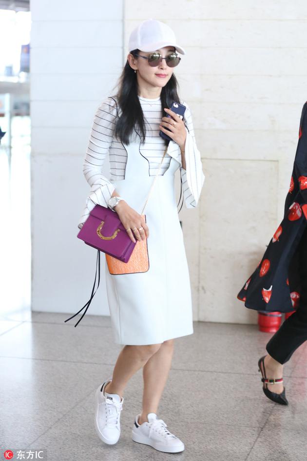 导语:2017年4月27日,44岁的李冰冰现身北京机场。李冰冰身穿条纹上衣搭背带裙俏皮可爱,背紫色斜挎包穿小白鞋清爽简单。