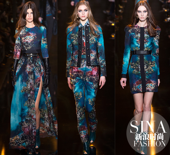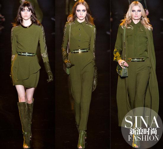 Elie Saab 蓝色印花俗话说:连母猪穿上Elie Saab都能变女神,但女神这季有点任性玩起了干练范儿。军装、短裙,摩登女人的一面全部展现。军绿色高腰长裤,硬挺的翻领和飒爽的披风,这个女人的国度想吃的不仅是唐僧肉,简直是准备吃定全天下男人的“好色”心。烈焰的红妆必不可少,不对称褶皱处理的裹身短裙,明暗交错的材质和脚上那双鱼嘴半靴,什么样的女人才是女王还不赶紧看过来。