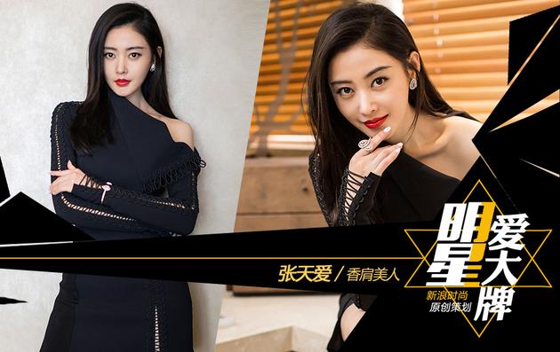 出席发布会当天,张天爱身穿Dion Lee 2017早春系列黑色斜肩裙,搭配Rene Caovilla黑色亮片高跟鞋,绑带设计让整个造型时髦度倍增。