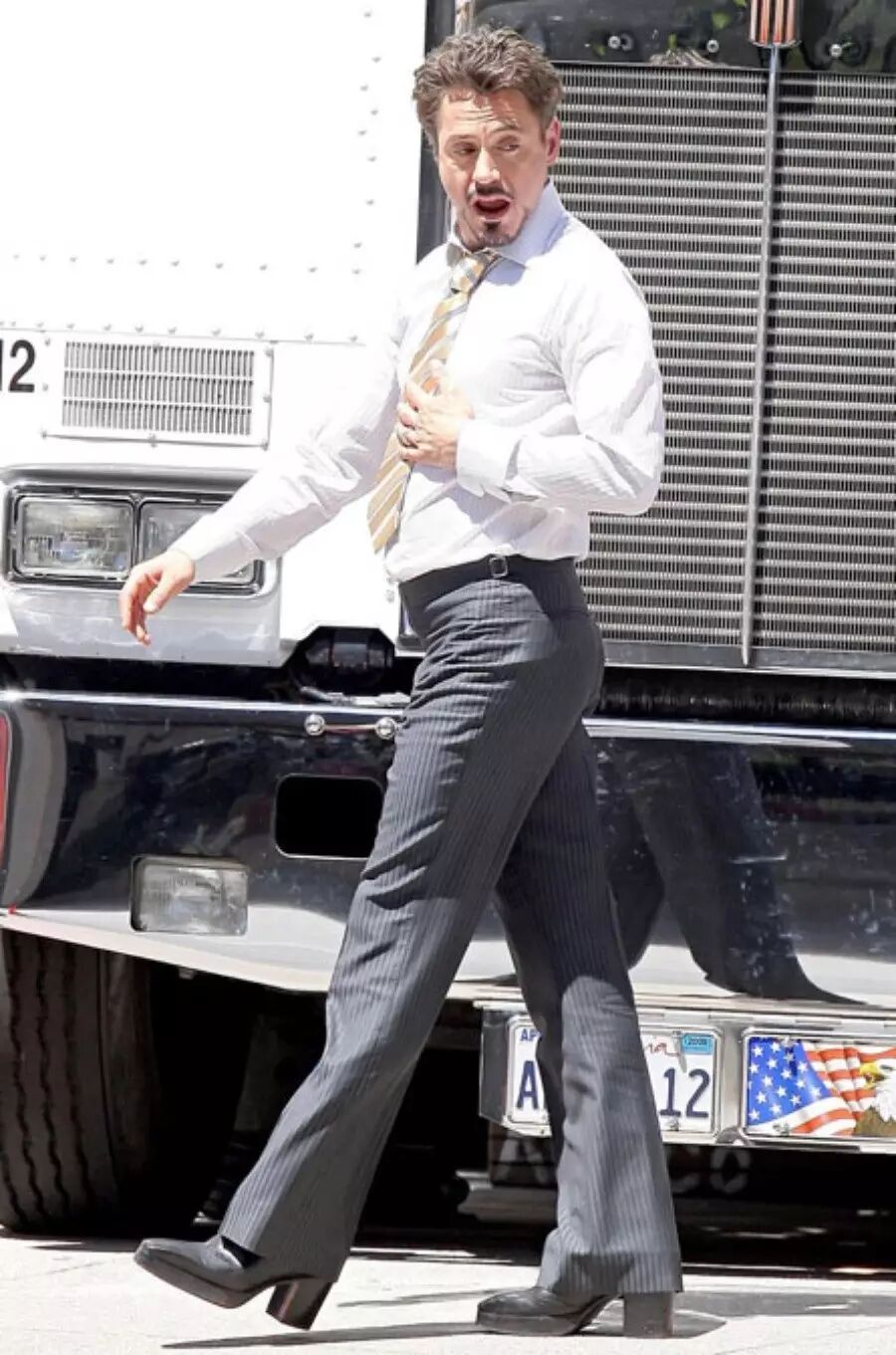 小罗伯特·唐尼也是高跟鞋爱好者。哈哈,还是今年特别流行的中粗跟鞋,分分钟走在潮流前端。▼