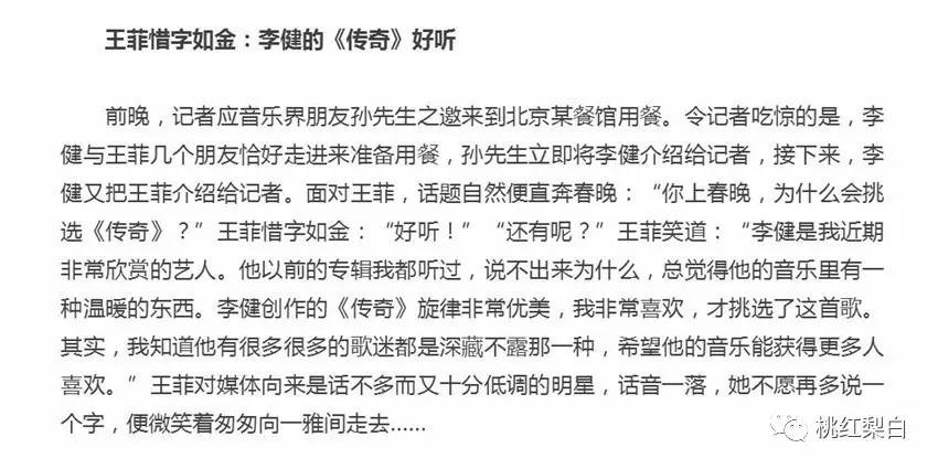 李健跟王菲的交情,可以看出不是通稿吹出来的。李健说王菲曾经帮他很多,但都不会告诉他,而且私下从来不会说坏话,从来都是默默做好事不留名。