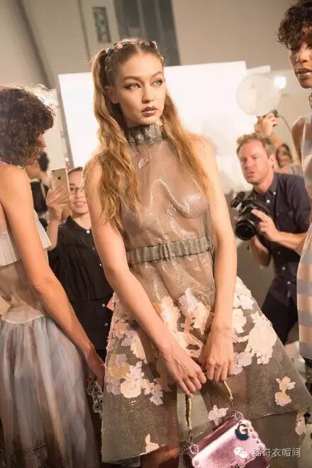2017春夏系列发布会backstage的Gigi ,一身最新季裸纱裙亮相,若隐若现的好身材看得人火气直冒,呃……不对,是鼻血。