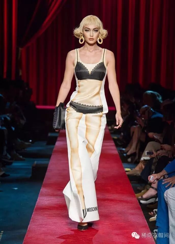 Gigi的百变造型你都认出来了吗?爱看热闹的报友们最不能错过的就是莫斯奇诺 (Moschino) 2017春夏时装秀这场好戏了!这一季杰瑞米·斯科特(Jeremy Scott) 再次开启脑洞,将主题定为纸片娃娃,就像是童年记忆中给芭比娃娃变装的贴纸游戏一样,让所有服装和配饰就像是被挤压过一般,从立体变成了二维形状。