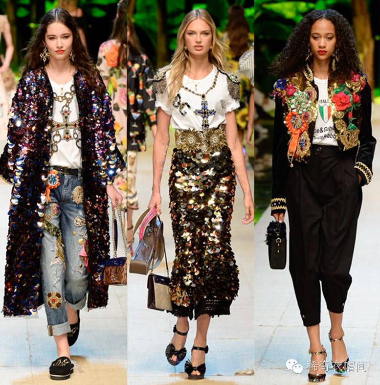 Dolce&Gabbana秀场好似不夜城的热闹和璀璨,秀场上多变的款式也体现本季的丰富性,整个Dolce&Gabbana的岛屿世界是热情洋溢的、阳光绚烂的、花果盛开的,也拥有着无与伦比的美。