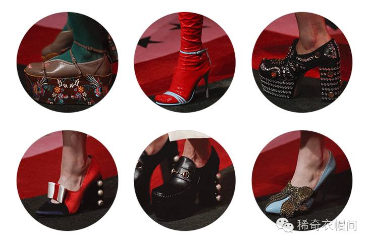 夸张的厚底搭配铆钉,摇滚味道扑面而来;娇贵的珍珠搭配可爱的尖头高跟鞋,秀气劲儿又瞬间跳出;还有被大量运用的中国花盆底元素,这哪里是鞋子,精致得可以当艺术品收藏了,你还舍得穿吗?