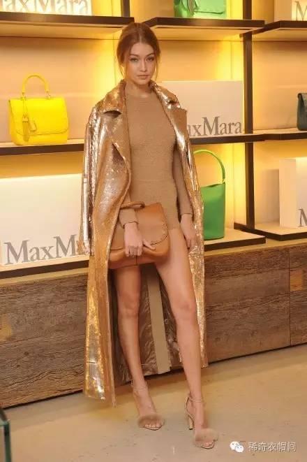Gigi身着Max Mara 2016秋冬系列金色亮片大衣闪亮现身Max Mara 米兰旗舰店2017春夏系列新款包袋BoBag发布会活动,引得现场粉丝云集,场面火爆。此前,Gigi Hadid 曾身裹Max Mara浴袍款大衣,为Max Mara 2015秋冬大秀开场,演绎梦露般的优雅与性感,并在2016年成为Max Mara秋冬配饰系列代言人。