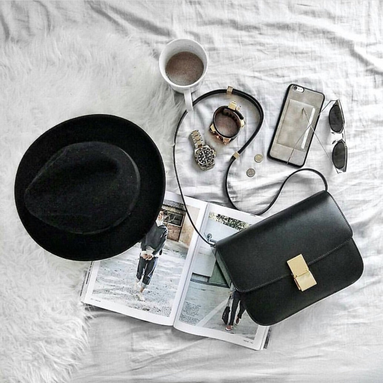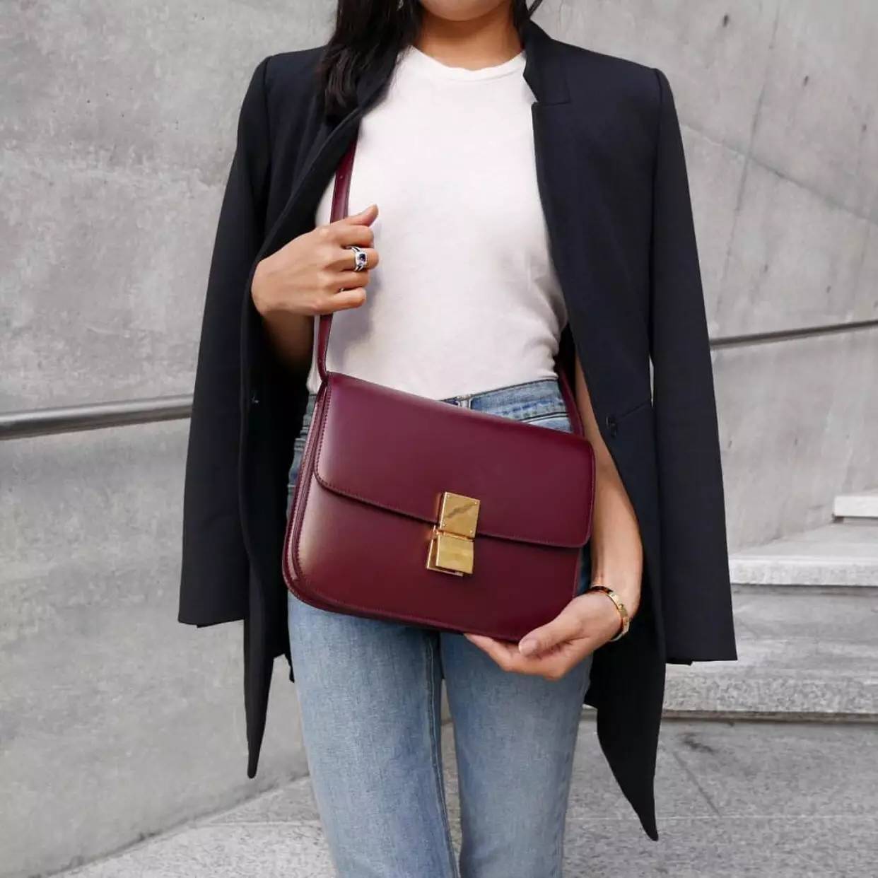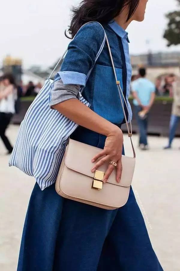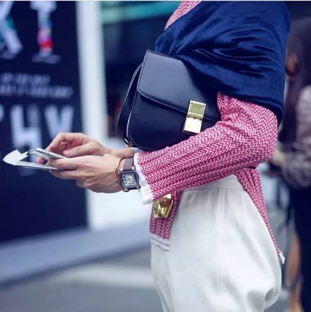 Celine classic box bag虽然价格不菲,但它的实用性和功能性还是不容怀疑的,而且一个包可以有三种不同的搭配方式,这个要归功于它可以拆卸的肩带,可以让你在肩背和手拿之间轻松变换。我们先来看看时尚达人是如何单肩背的。