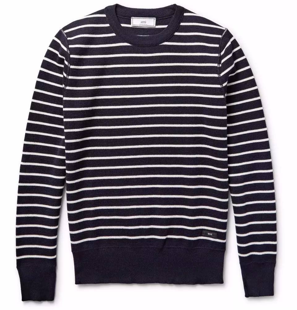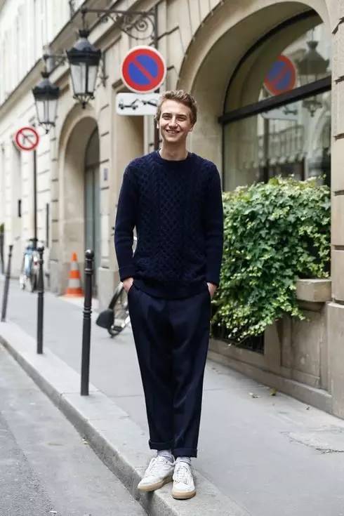 如果说到轻松的法式毛衣,还会想到的就是Ami。这件横纹的毛衣在穿上身后能马上减龄10岁,不想显得太稚嫩的话要小心考虑。而袖口的设计也是扎起来的,会比较适合身材小的男生,如果肌肉感太强,穿这件的话就会显得局促。