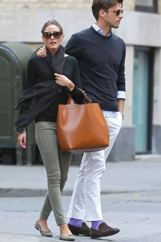 虽然高领毛衣很时髦,但在这种乍暖还寒的时节,还是一件轻薄的sweater更实用一些。又或者你可以学小雀斑那样,单穿一件薄毛衣在西装外套里打底。这时,你就可以选件略为花俏的款式了。