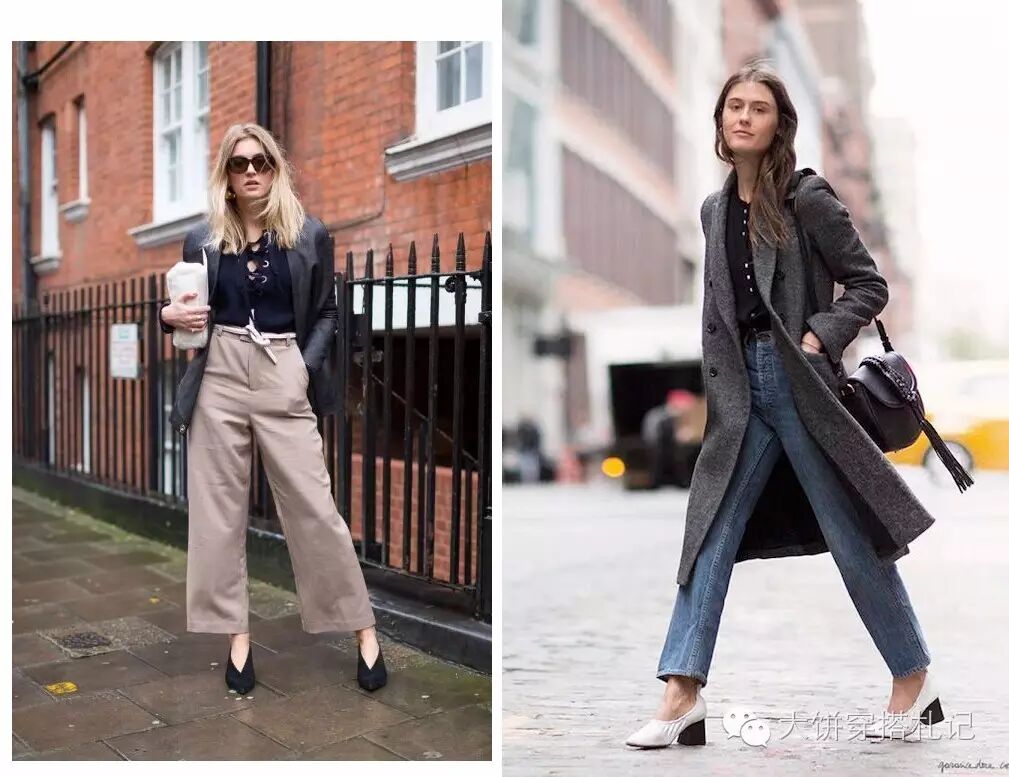 同样裤装和裙装都不挑,风格上也无太多的限制。而一样的深口鞋,所以搭配的时候一样需要的还是露脚踝……也当然你有能力搭配好袜子,也是完全可以有滴。