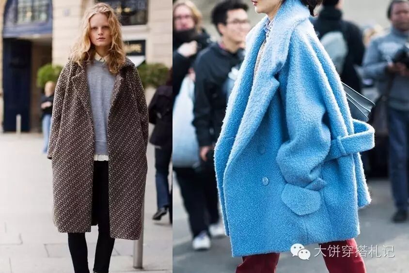 除了以上的X和直线条,能突出娇小女生和麻杆姑娘又是的茧型大衣也是常见之选。圆圆的设计,透着可爱和减龄~