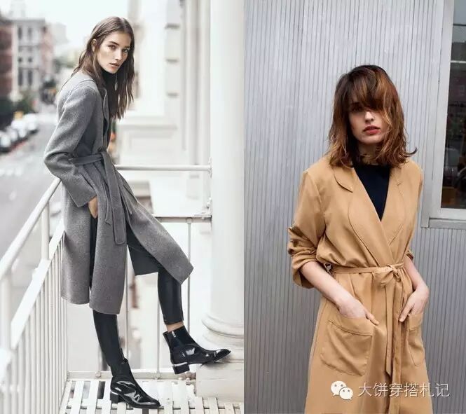 浴袍大衣有种随性又优雅的轻熟气场,所以饼会建议25+姑娘们从气质色入手:驼色、灰色、墨绿、干净的粉、米色……都是基础不错的选择。饼的保守建议就是冷灰暖驼(不绝对)~