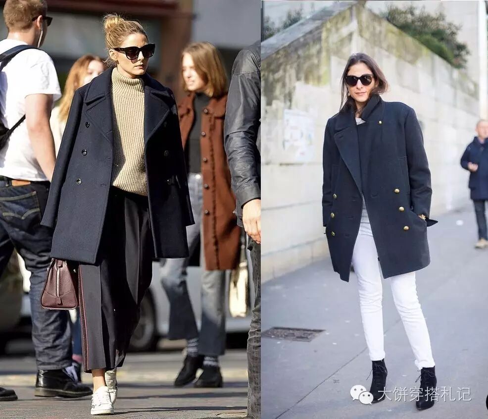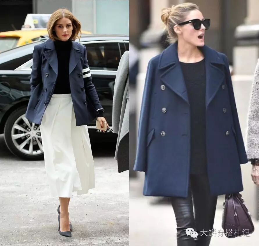 作为短大衣的经典之选,钟爱这一件的olivia早已身体力行的告诉姑娘们,这一件自然要以海军蓝为主~