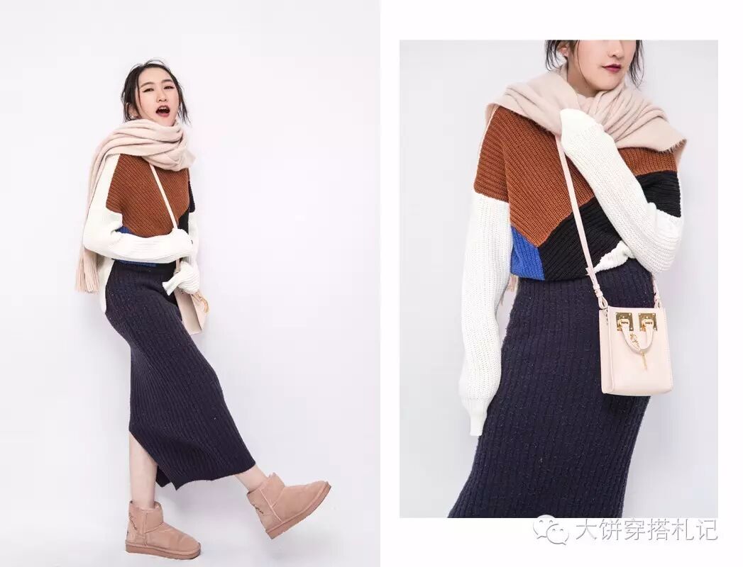 毛衣:C/MEO | 裙子:Mila owen | 鞋子:GgiftX Disney | 包:Sophie Hulme | 围巾:H&M