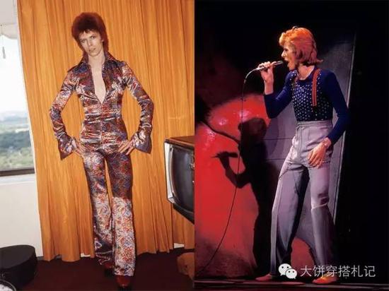 说到喇叭裤,这潮流还真的是一波滚着一波来的,刚走了嬉皮风,我们又赢来了敞开怀的Disco年代。嘿,没错迷醉的David Bowie随着他的迷幻华丽摇滚风又要再次洗刷时尚圈~