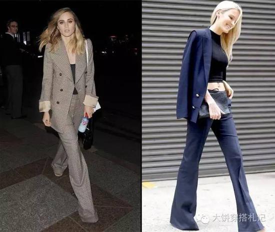 Olivia一组街拍,你就明白,喇叭裤最经典的搭配还是小西装。毕竟经典的flared pants suits也曾是一个时代的标杆。