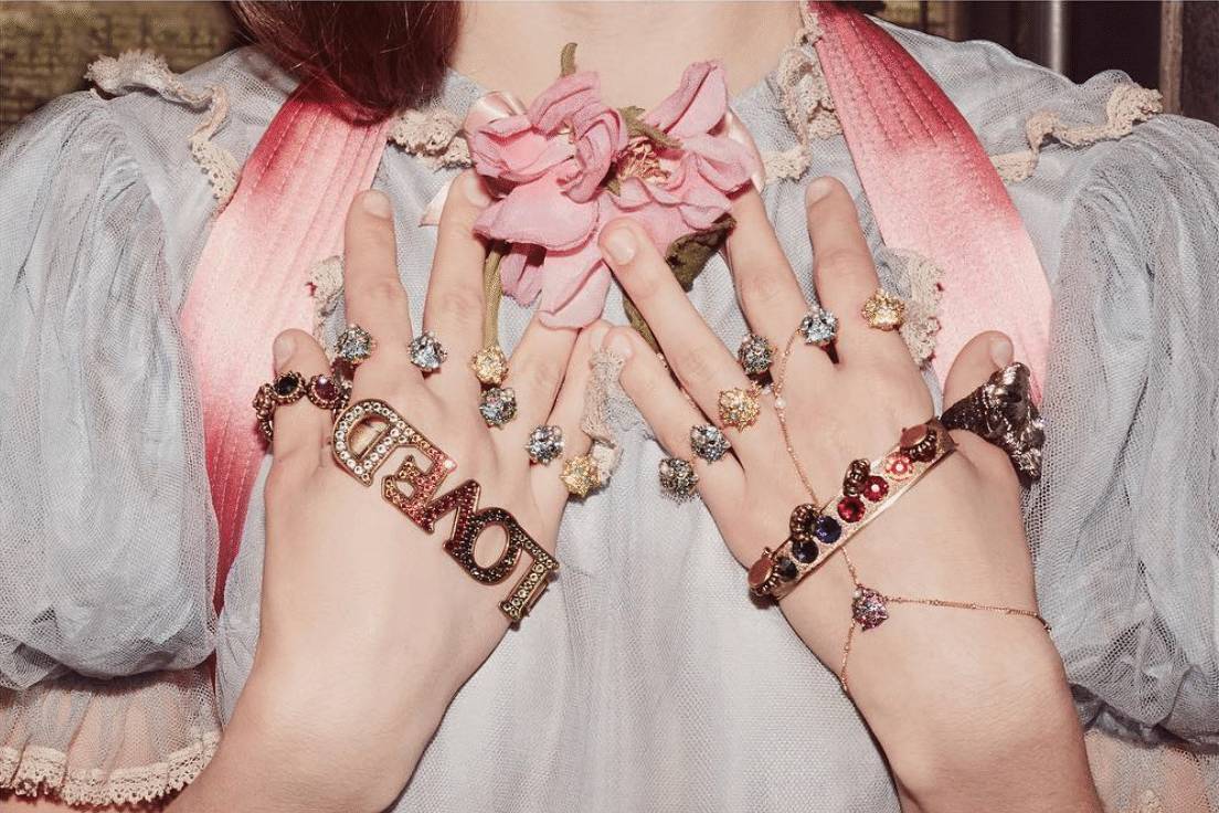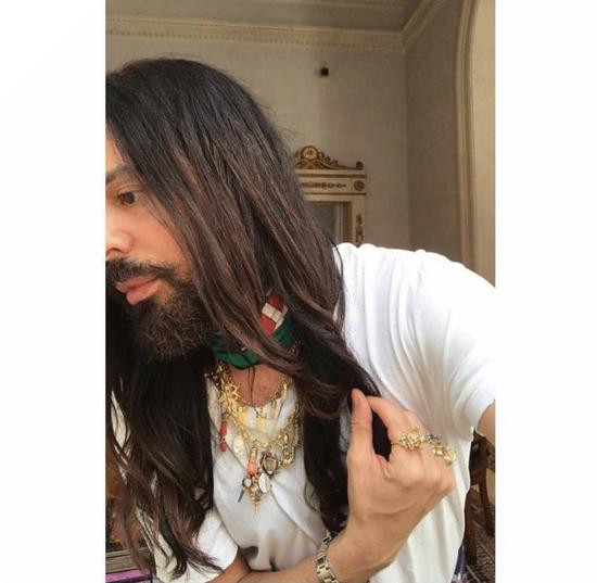 曾担任过配饰设计师的米开理,对配饰的痴迷毋庸置疑,戴一两个戒指已经满足不了他了,必须要戴满!