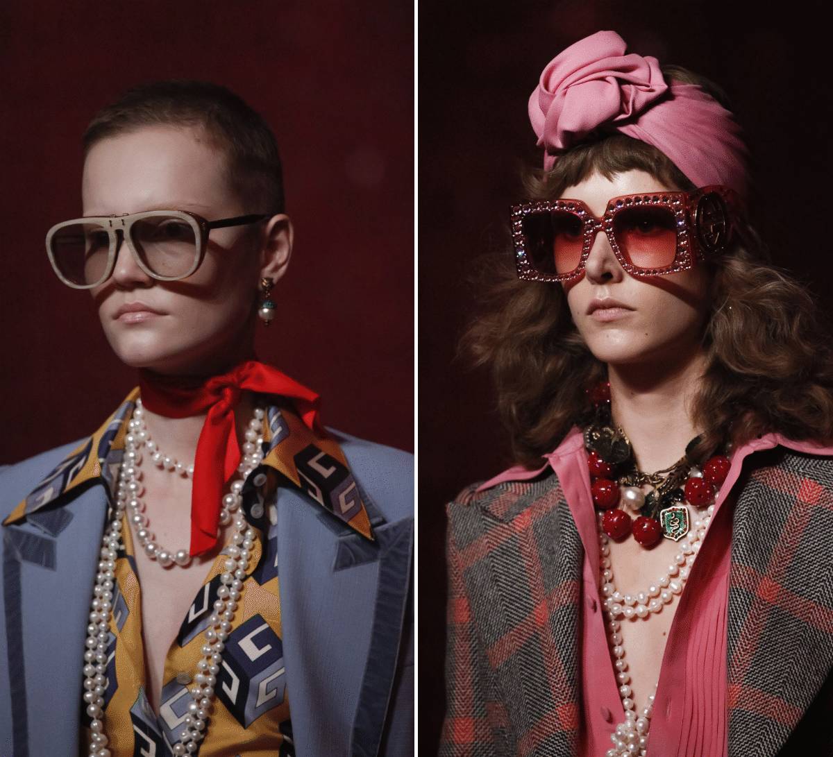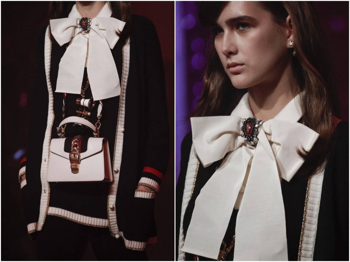 每个时髦人士的家中必定备着各种花色各种大小的丝巾吧!Gucci在秀场上也为大家演绎了两种基本又实用的丝巾绑法。