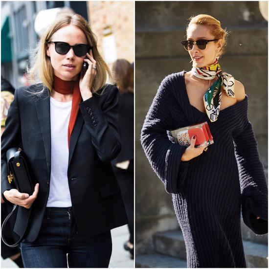 即使一身黑,只要脖子上系上一根丝巾,立马打破沉闷,愈显明艳过人。