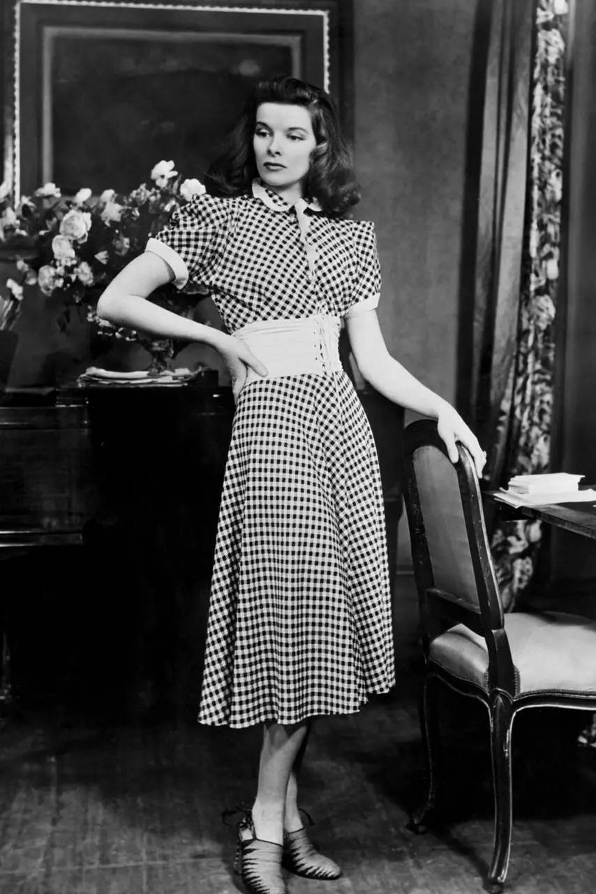 凯瑟琳·赫本这身维希格纹连衣裙还配上了这两年流行的腰封,优雅大气,时尚果然是不断的轮回~▼