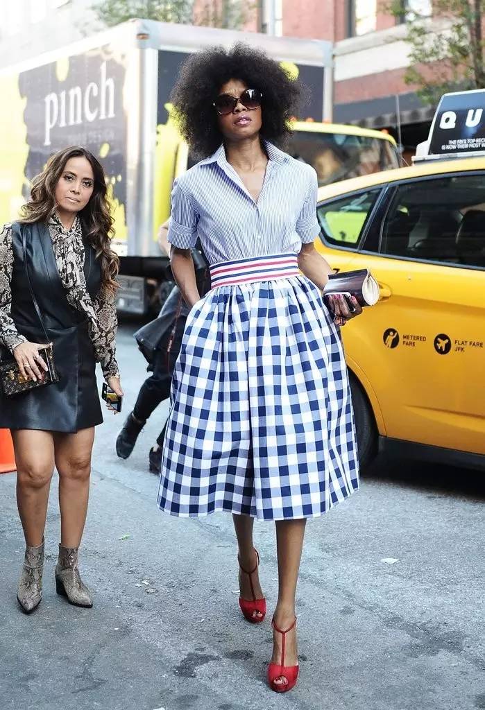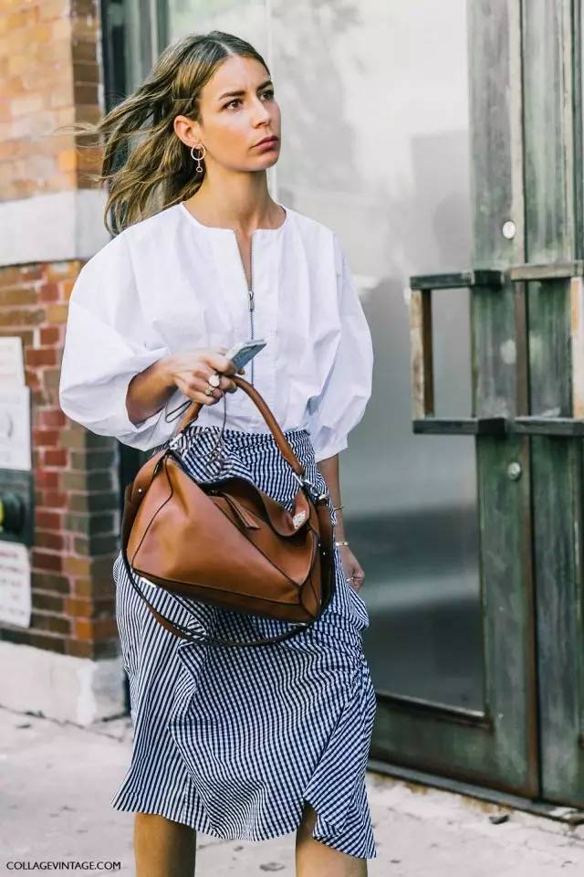 不爱穿裤子的也可以选维希格纹半裙,它一直都很流行,往年街拍中最常见的还是这种大格子的。▼