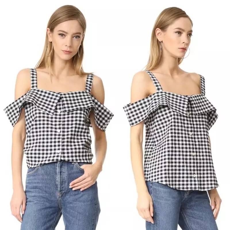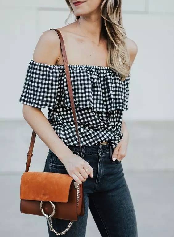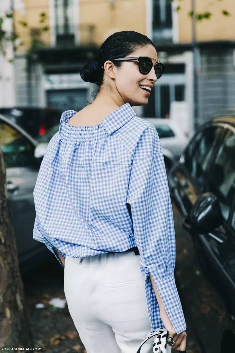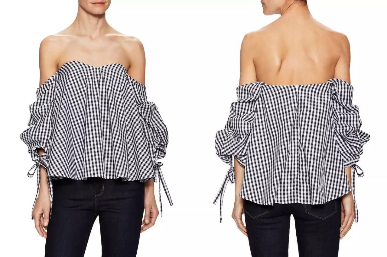 发现没,因为格纹本身就有些膨胀感,好看的格纹衬衫一定是要多露肤设计的,上面那些都是,像下面这些露腹部、露肩的也挺好看。▼