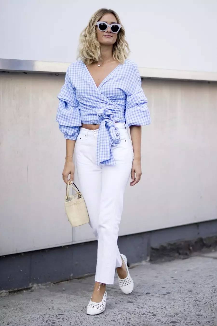 即使加上荷叶边、泡泡袖这些小细节,也不会觉得太过繁复,下身搭条牛仔裤就可以了。▼