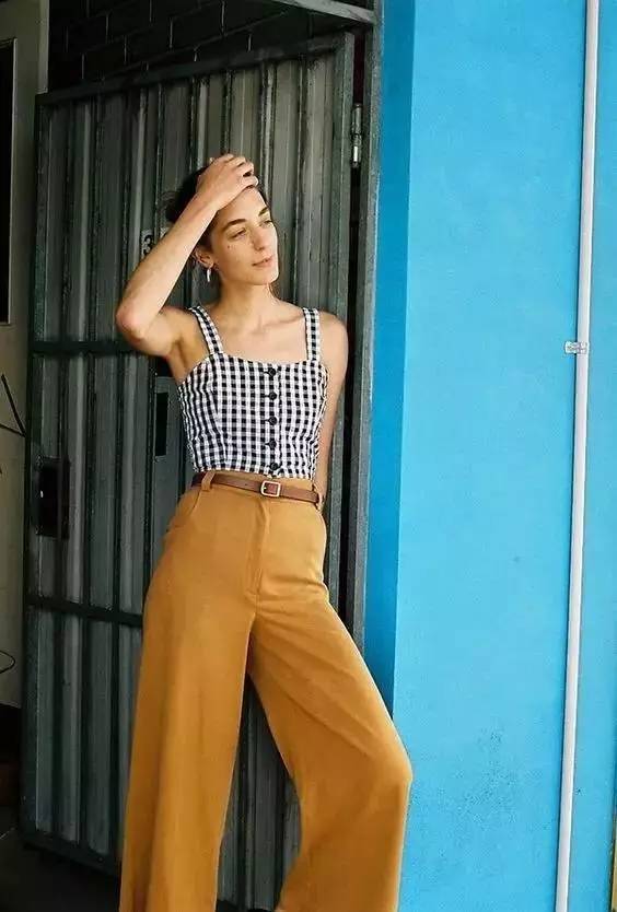 不想天天穿牛仔裤,偶尔想换个口味的,可以试试维希格纹的九分裤,它有种天生的文艺复古感。
