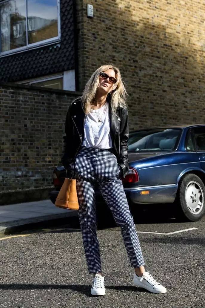 想要更清新减龄,可以选颜色特别一点的格纹裤。▼