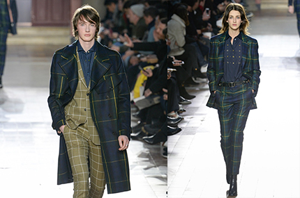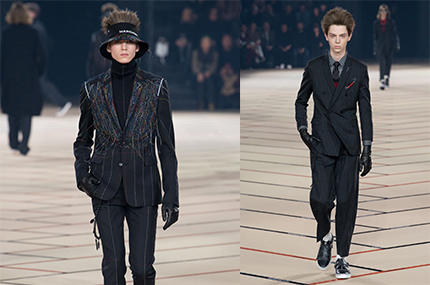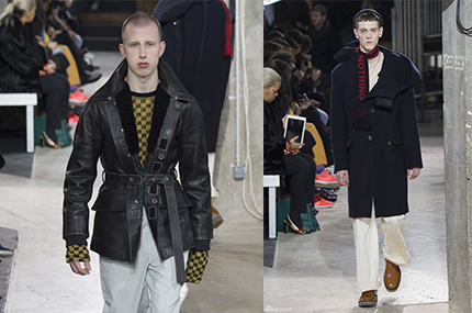 Lanvin 2017秋冬男装系列依旧围绕着剪裁,结构来探究男士的着装,在材质和工艺上做研究。年轻的冲锋衣,派克大衣,阔腿裤等潮流单品与经典的法式风格结合,而服装上关于“Nothing”的标语更使服装多了份年轻和活力。