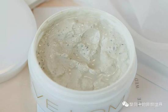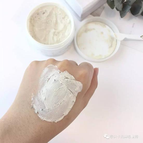 它里面添加了杏仁粒、高岭土、蜂蜜、樟脑等等,能够温和去角质、吸收多余油脂,同时让皮肤保湿又有弹性。刚刚说了,面膜是蜂蜜和膏体分离,难怪它配了个挖勺,挖出来后把膏体搅拌匀再涂到脸上。