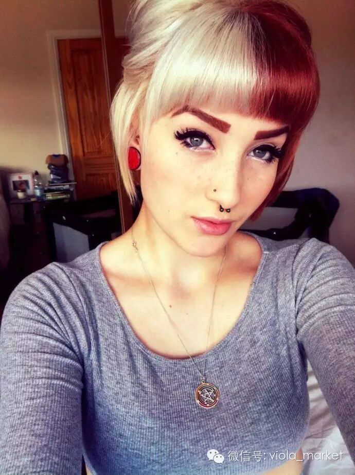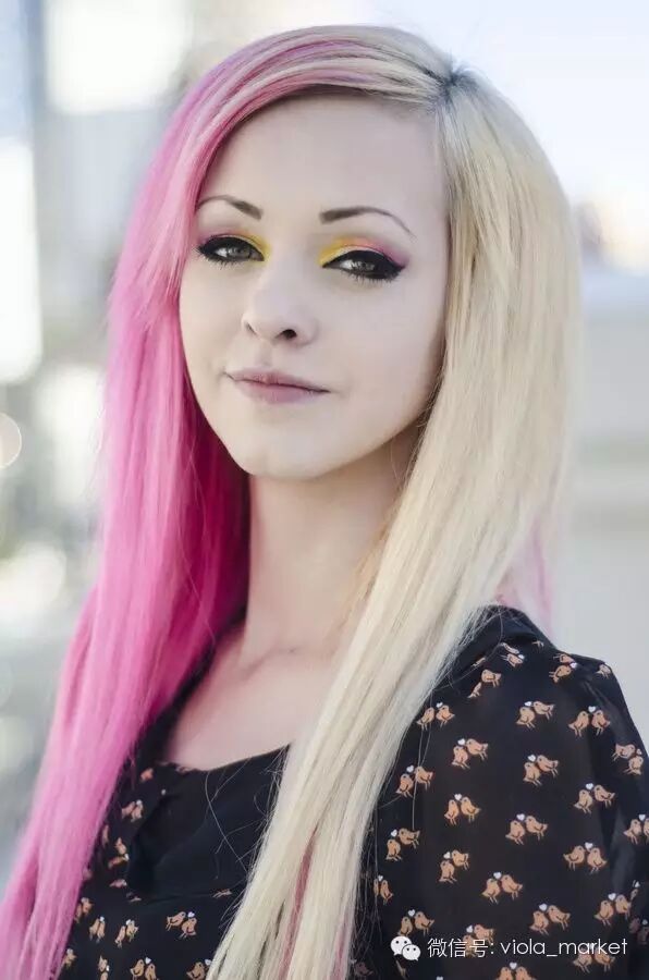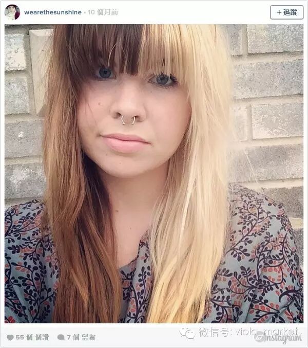 这个新趋势在Instagram上的标签为“split hair”字面意思便是分裂,简单来说将头发用颜色作明显区隔,来达到分裂效果。至于分裂成什么样,歪果网友们也是百花齐放的晒出了她们的“对半染”造型。
